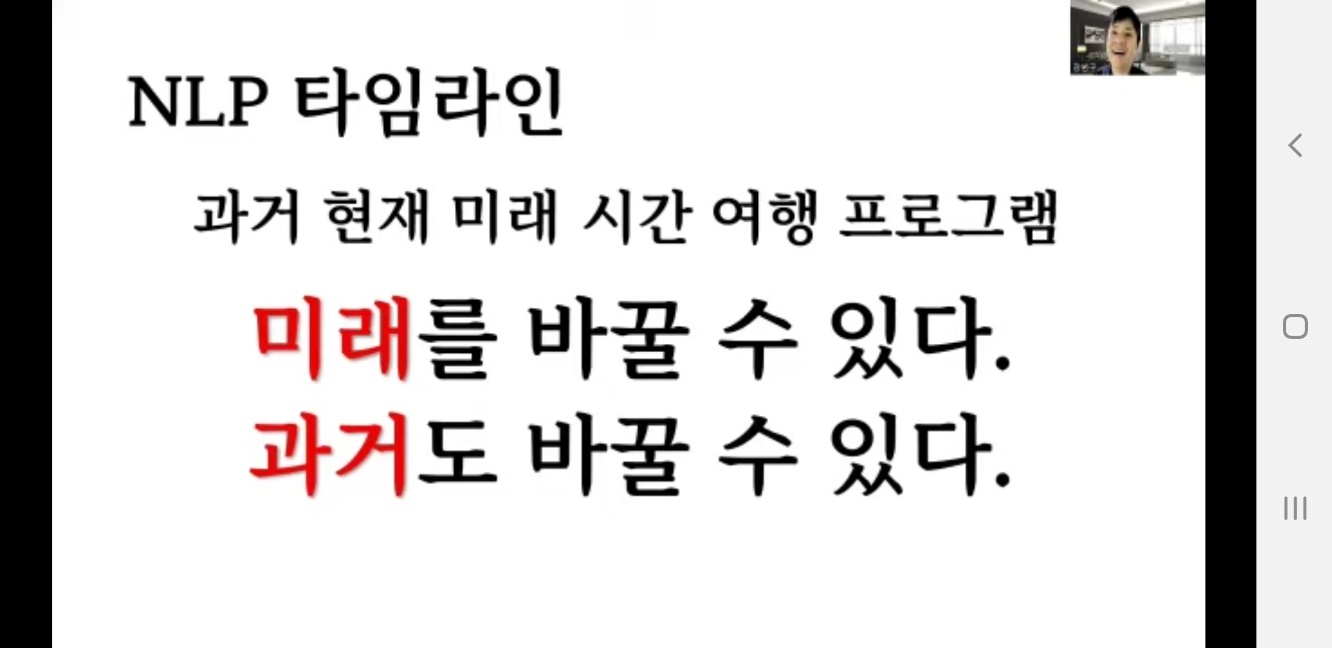 근데 그것을 바꾸기 위해서 언어를 통해서 사실상 그것을 느낄 수 있도록 해주는 것이 NLP 타임라인입니다.