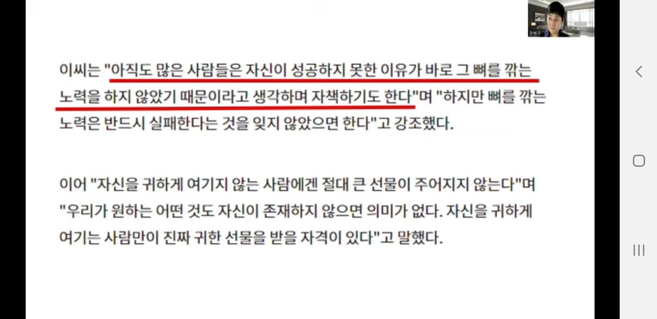 자 그럼 또 성공한 사람 중 이지영 강사의 영상을 한번 보겠습니다.